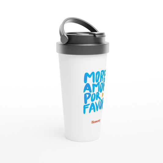 More Amor Por Favor - White 15oz Stainless Steel Travel Mug